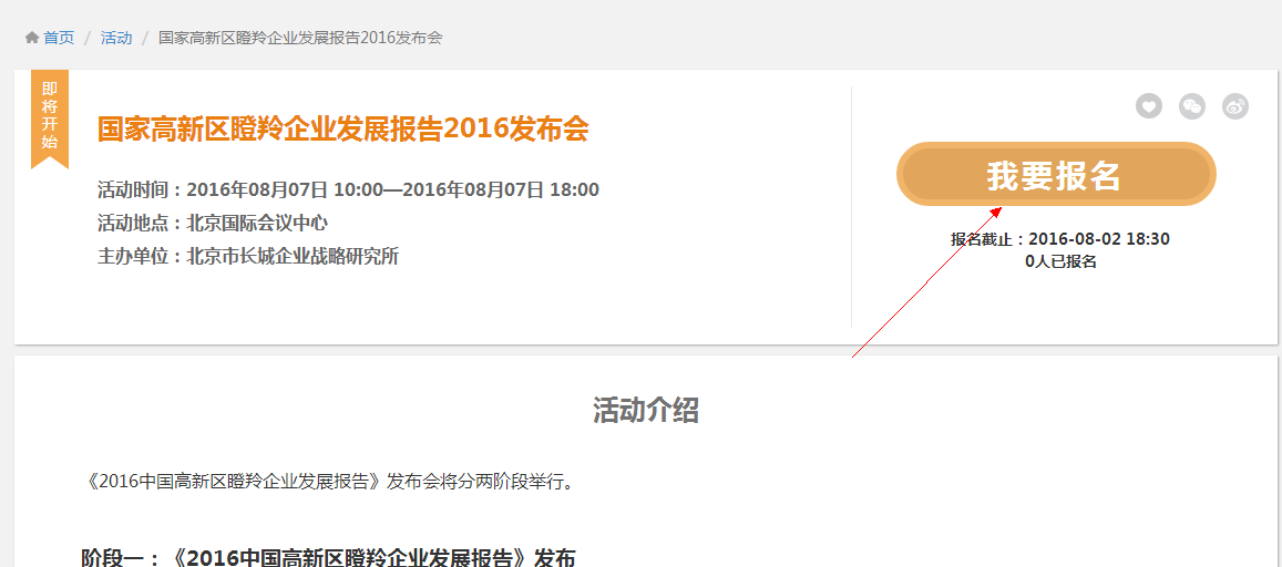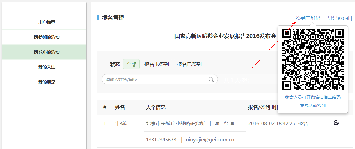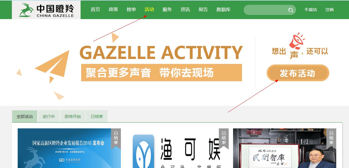發布 平臺活動,用戶填寫 活動詳細信息,經平臺運營人員審核通過,即可發布在中國瞪羚,并且支持活動的在線報名和簽到。